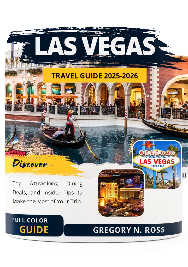 Ideal for tourists planning a trip to Las Vegas, this guide is used during travel preparation and on-the-go for quick reference. It suits various occasions, from family vacations to solo adventures, and targets adults interested in exploring casinos, shows, and natural landmarks in the Western US.